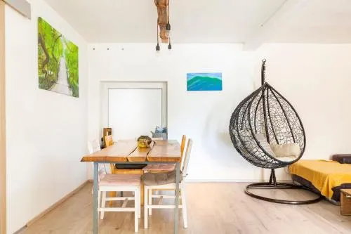 Weitere Informationen zu Hillside Bio Resort Apartment with Mountain ViewDas Grünthouse in Kaplja vas bietet ein geräumiges Familienzimmer mit Platz für mehrere Gäste und einen kostenlosen Parkplatz direkt vor der Tür, ideal für Reisende mit Auto. Das Haus verfügt über eine entspannte Atmosphäre und liegt zentral zwischen kulturellen Highlights und Naturattraktionen.