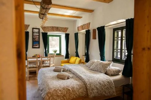 Weitere Informationen zu Apartma Vila TaraDas Golavškov mlin, Eco Heritage Boutique Stay bietet einen kostenlosen Parkplatz sowie freien Internetzugang für Gäste und sorgt mit einem Shuttle-Service zum Flughafen für eine unkomplizierte Anreise. Das historische Gebäude verbindet ökologische Materialien mit modernem Komfort, während die ruhige Lage am Rand von Prebold gleichzeitig Nähe zu kulturellen Highlights ermöglicht.